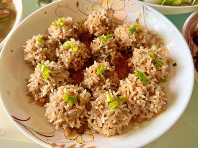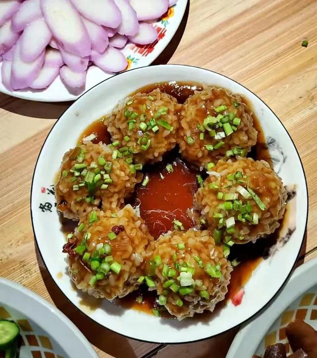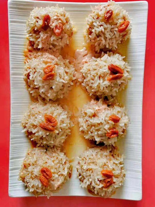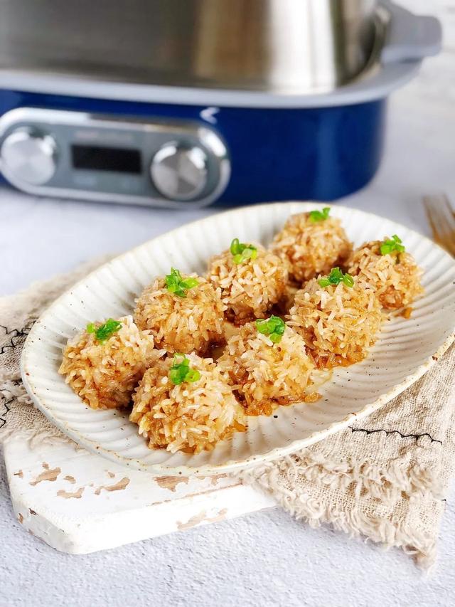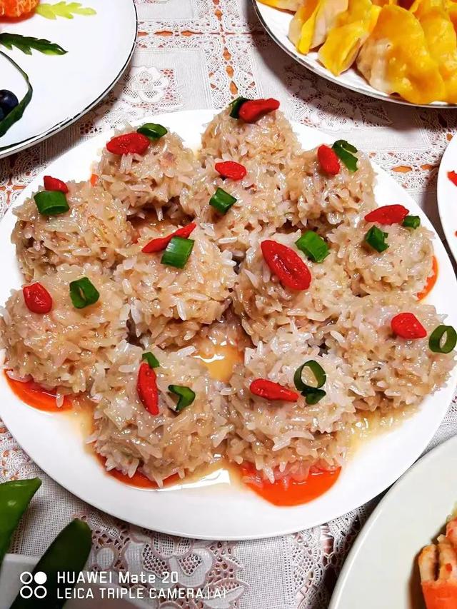 “糯米珍珠丸子是以猪肉和糯米作为主要材料,经过蒸制而成的。加入糯米,吃起来粘粘糯糯的,糯米吸收了猪肉的汤汁,特别特别好吃~”