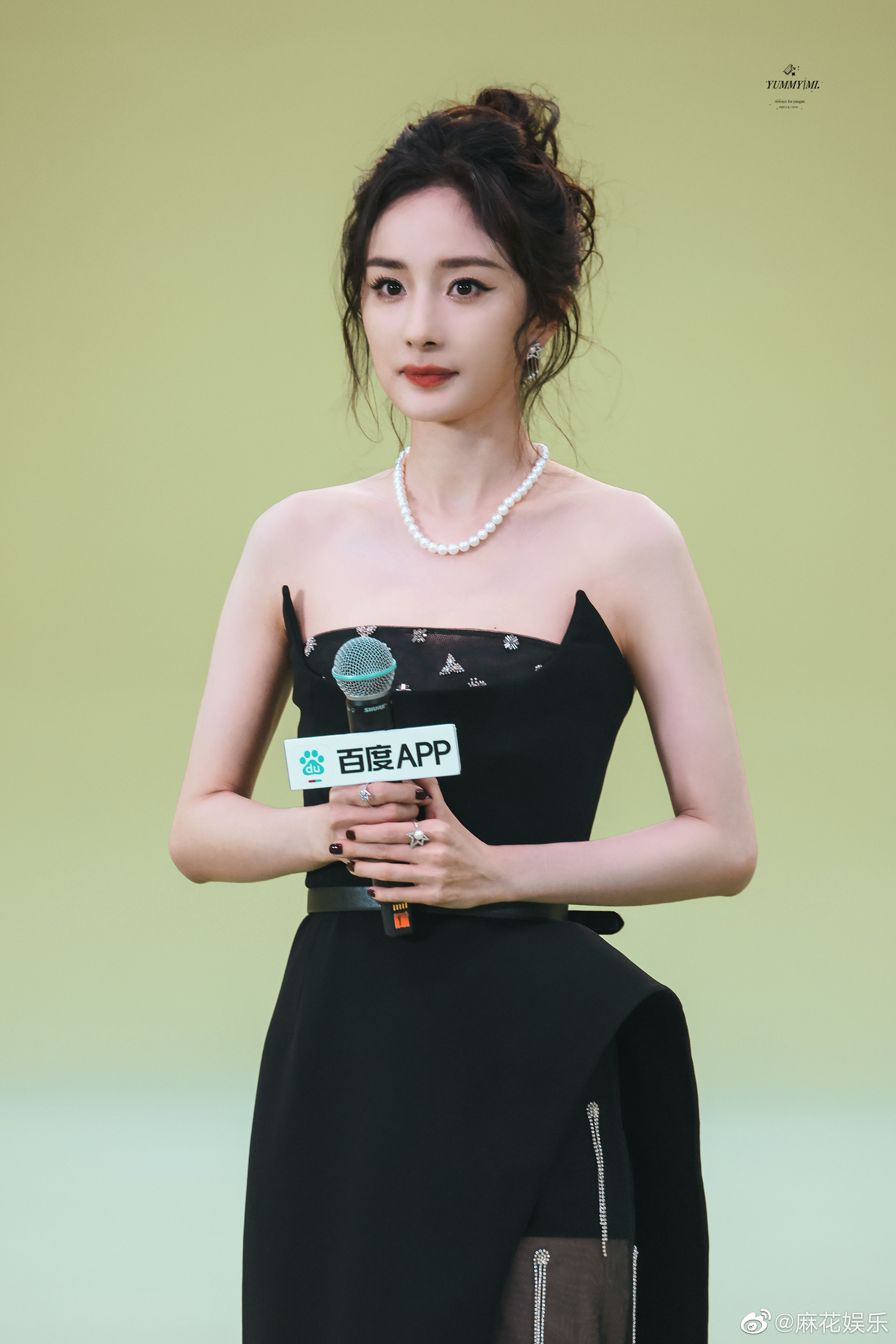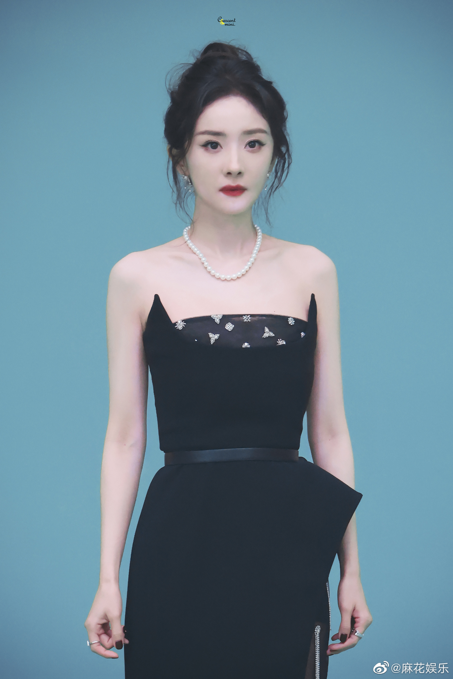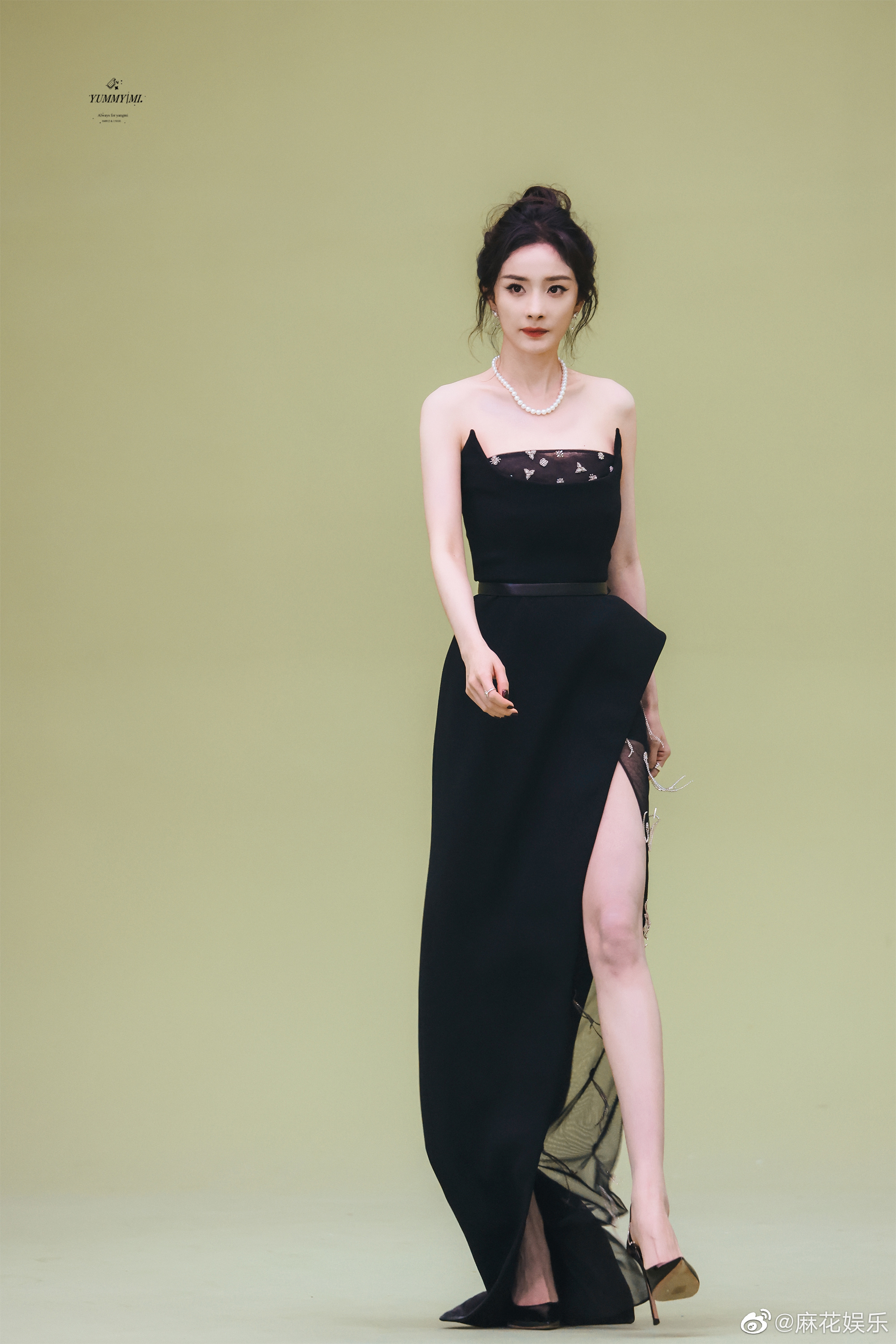 #杨幂盘发高开叉黑裙造型##杨幂黑裙盘发造型#