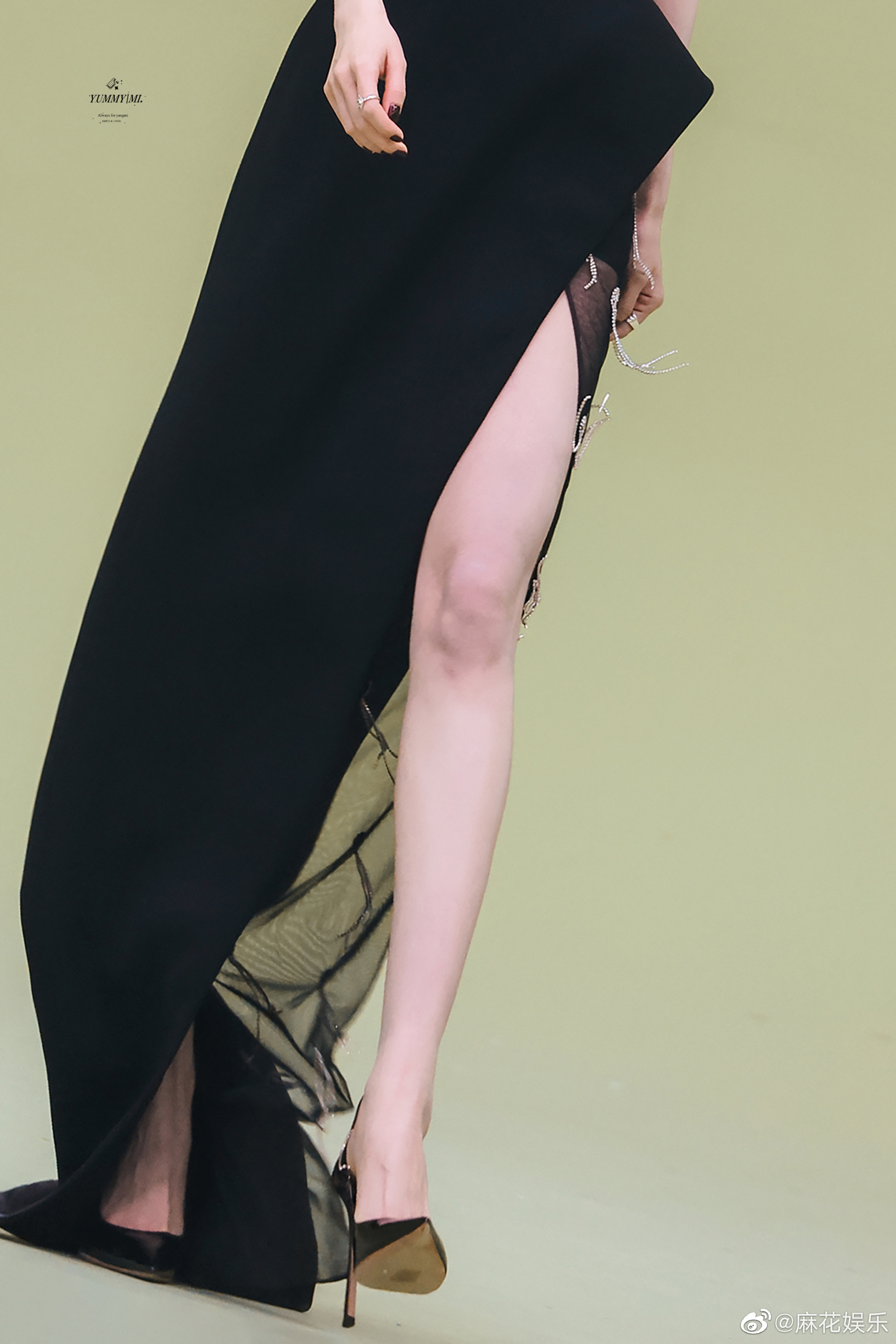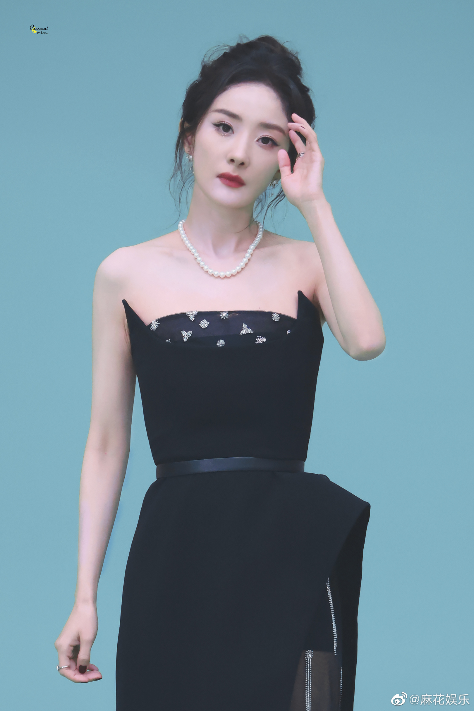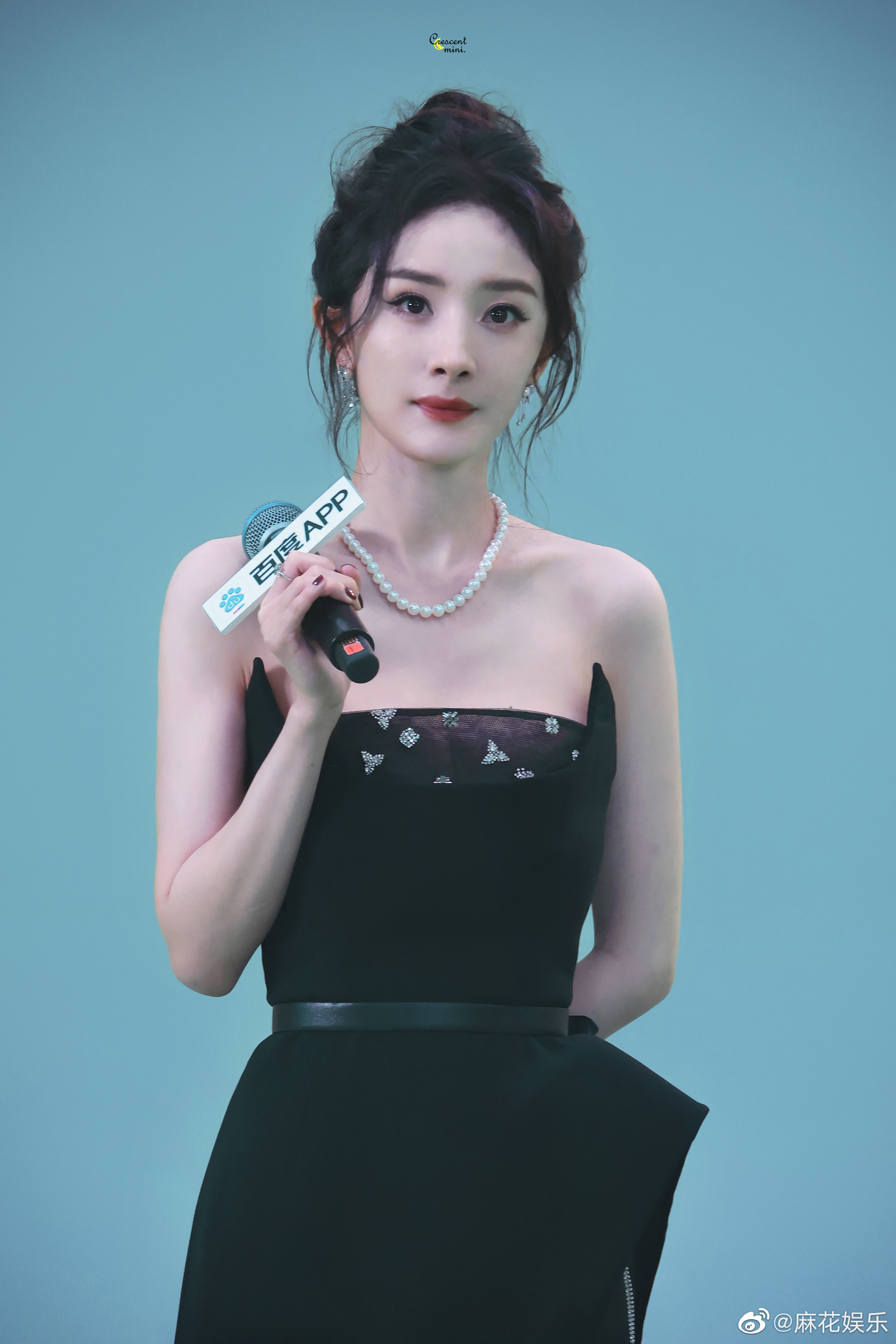 #杨幂盘发高开叉黑裙造型##杨幂黑裙盘发造型#