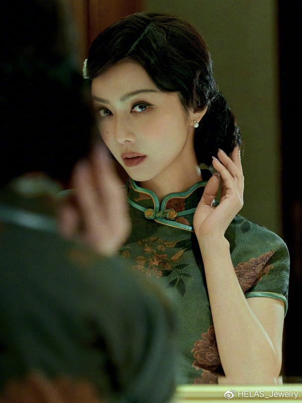 同样是珍珠耳钉,薛凯琪却戴出了民国上海滩的摩登风格,搭配一身檀绿色旗袍,有种沉稳大气的氛围,盈盈珠光映照熠动钻石,耳畔的珍珠起到画龙点睛的作用,更加烘托出独到的复古魅力。