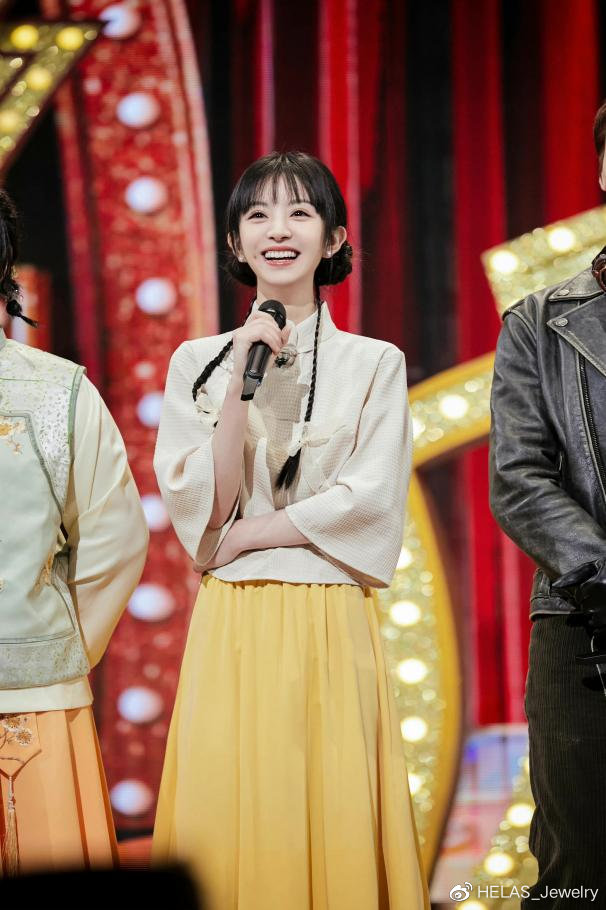 田曦薇身穿白色民国风的盘扣唐装,笑容清澈动人,面对复古的民国穿搭,一副珍珠耳饰也能恰到好处的驾驭这种风格,以倒影绘就钻石光芒,镶嵌一颗莹润珍珠的设计虽然简单,却能将她明媚优雅的气质展露无疑。