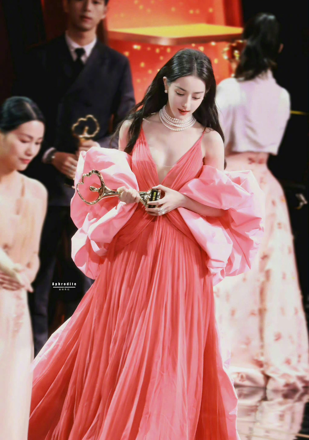 粉红色长裙?珍珠项链佩戴这个头饰真的异域风情氛围感满满!一股子新疆美人的感觉