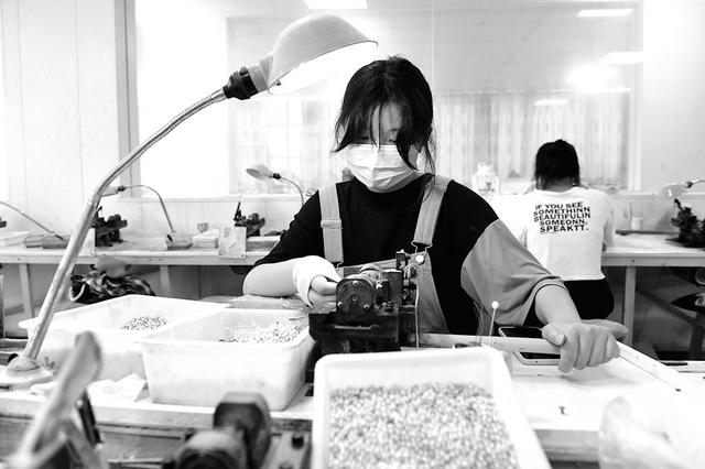 图为7月19日,在颍上县古城镇珍珠养殖基地,工作人员正在给珍珠打孔。黄博涵 摄
