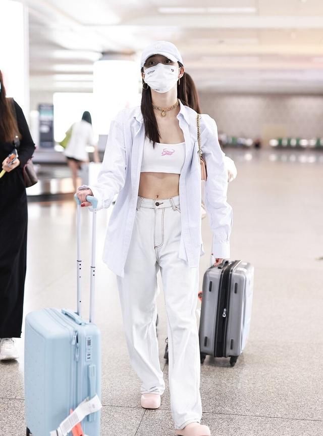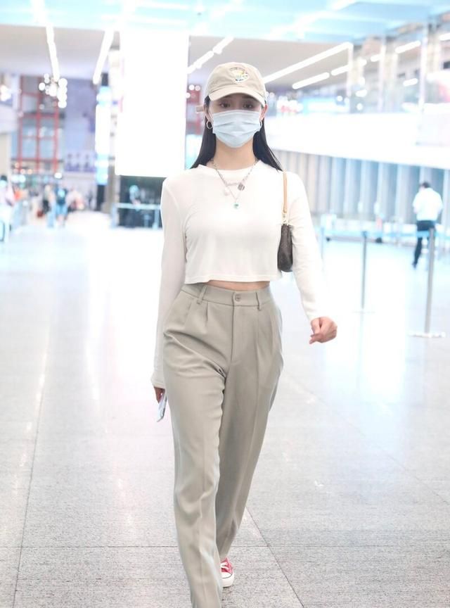 在周洁琼的搭配里,通过露脐装来秀出优越的腰部曲线的穿法十分常见,这甚至能称得上她的穿搭特色之一。往往短上衣配合高腰裤能够让身材比例分割更加清晰,从而突出大长腿效果。