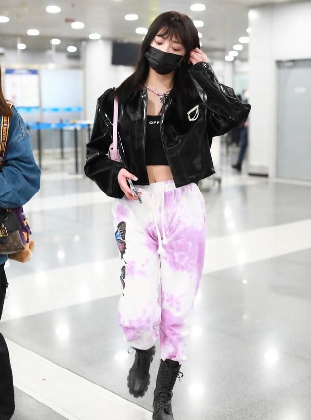 除了以上个性鲜明的单品,在选择基础款单品周洁琼也表现出了超强的时尚搭配能力,短卫衣配合长裤简约大方,整体采用浅色搭配却又通过相近的不同配色增添层次,还让搭配不失整体感。