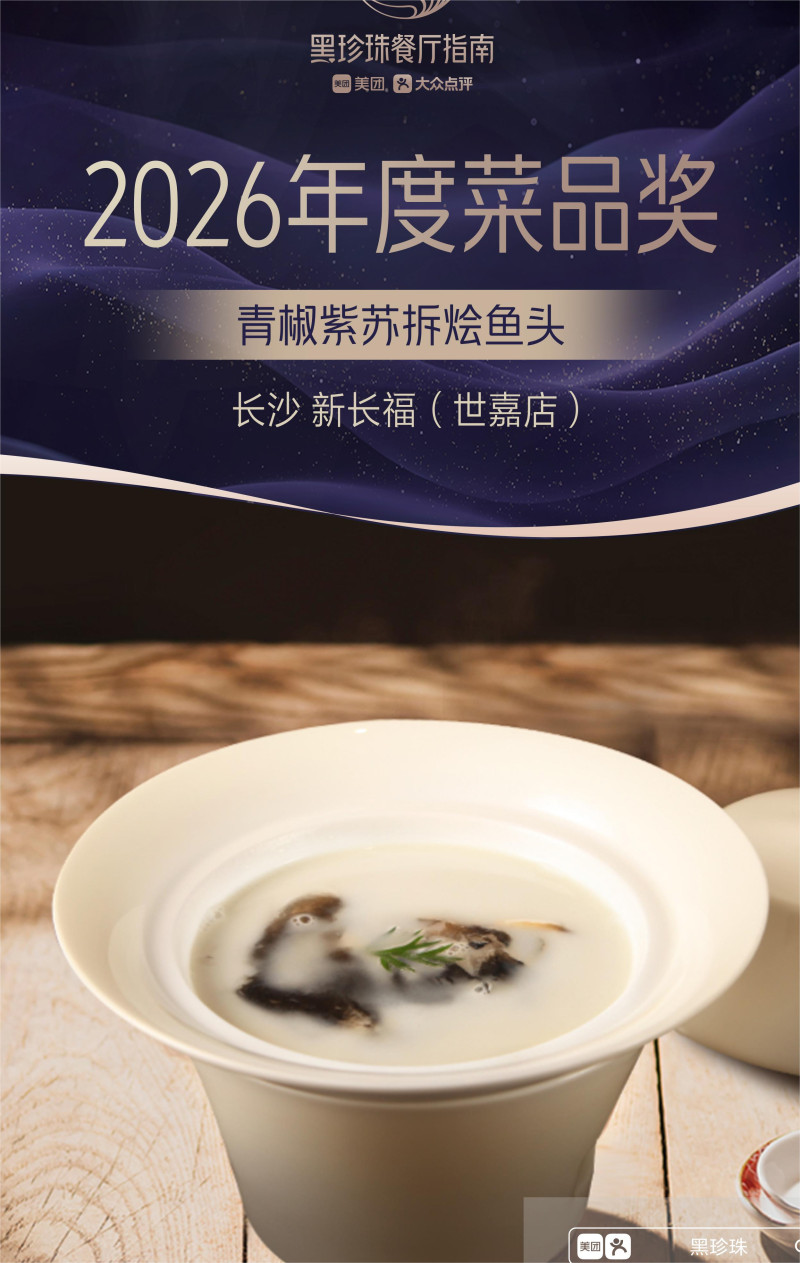此次新长福旗下门店多点开花,佳绩频传:北京新大都店凭借稳定的高品质表现,连续第二年荣膺黑珍珠一钻餐厅,持续巩固品牌在北方高端餐饮市场的地位;长沙世嘉店则再创辉煌,不仅连续四年蝉联黑珍珠一钻荣誉,更斩获全国唯一的“黑珍珠服务团队奖”,其招牌菜品“青椒紫苏鱼头汤”同步获评“黑珍珠2026年度菜品”,实现服务与菜品的双重突破。